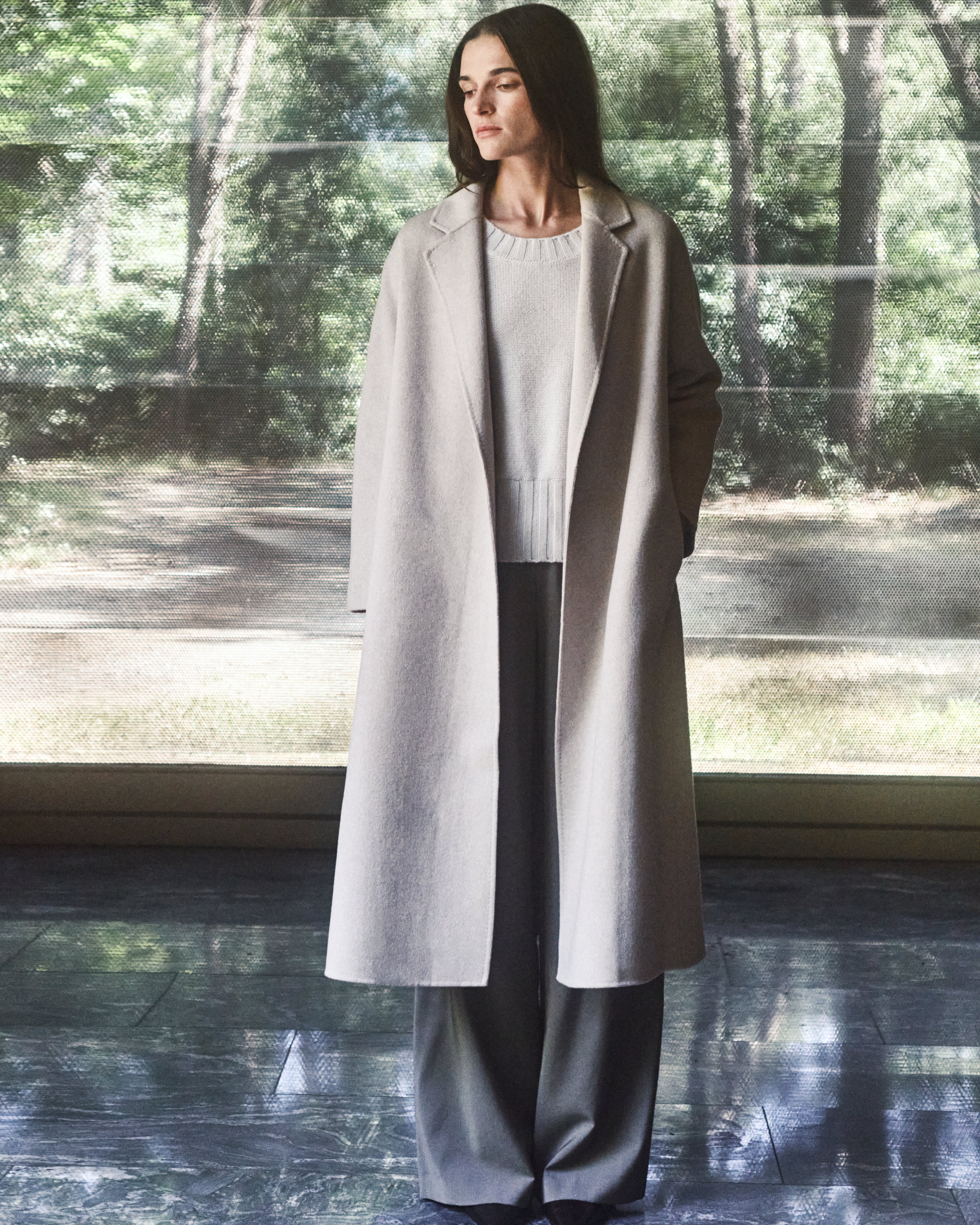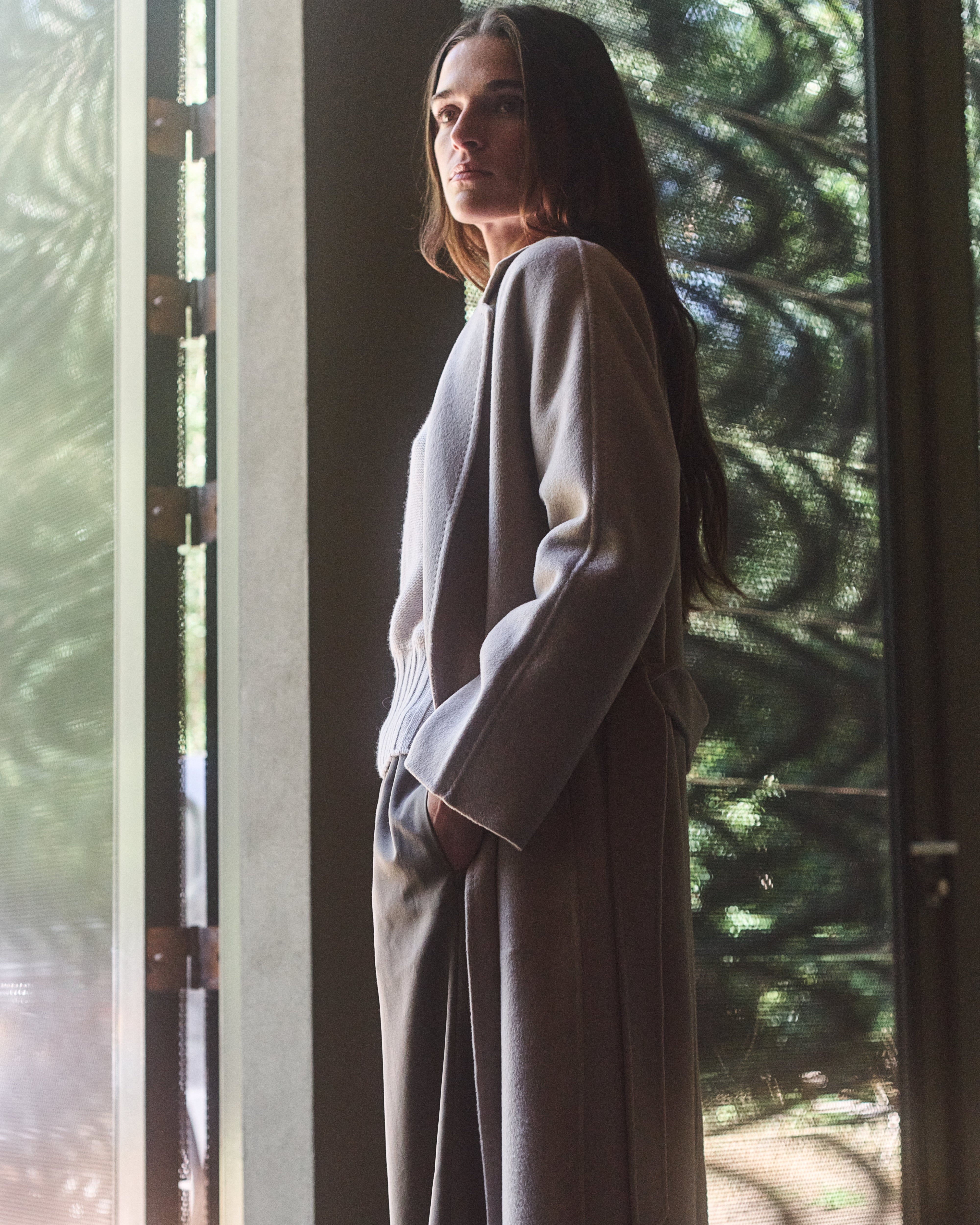 Tailored in soft, weighty cashmere, the Isblom Coat brings quiet structure to colder days. The mushroom tone recalls frost-covered stone