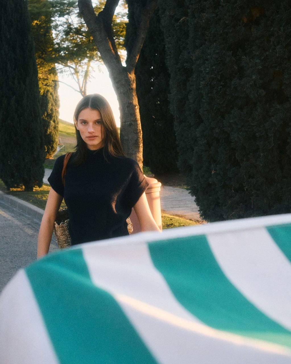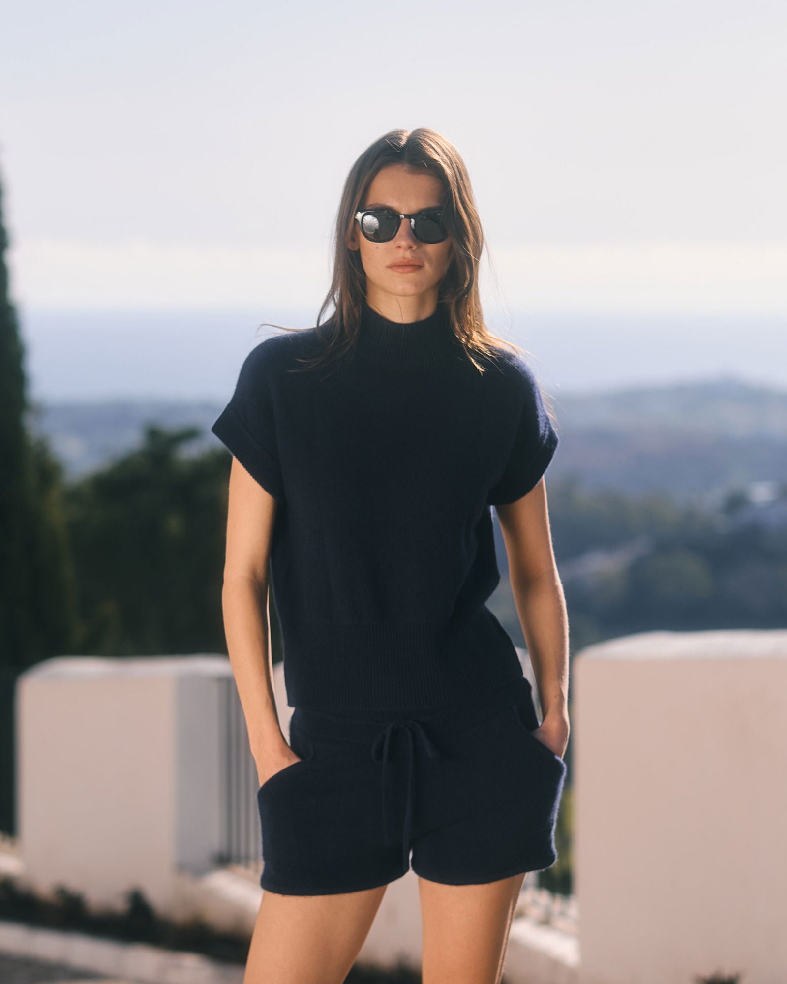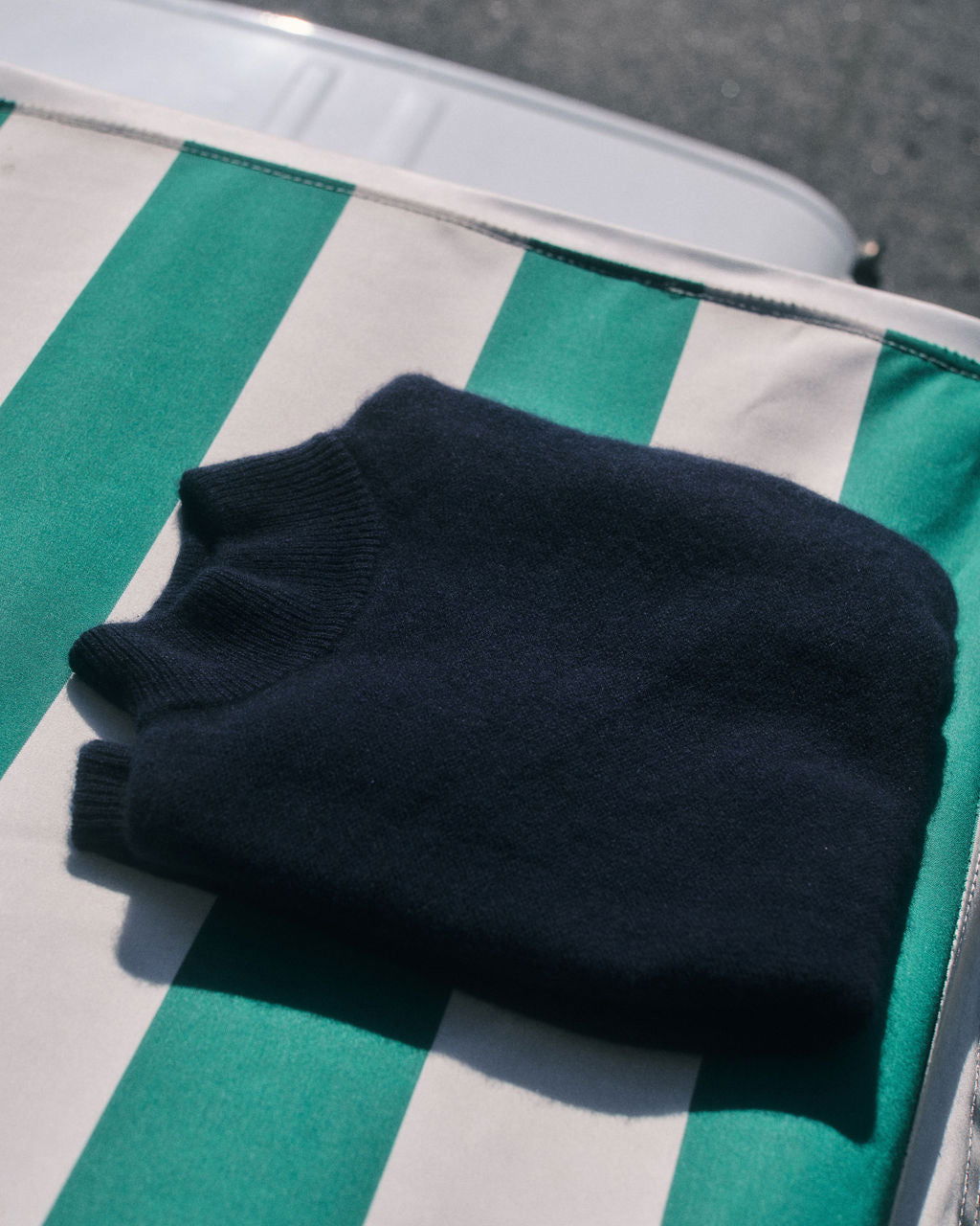 Lightweight cashmere with a refined high neckline. Inspired by the ease of Sierra Nevada. Ideal for cool summer evenings.