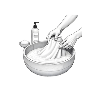 Fill a basin or sink with cool water and add approximately one tablespoon of cashmere soap. Use slightly less for lighter colors and a bit more for darker shades. For the best results, choose a soap with a low pH.